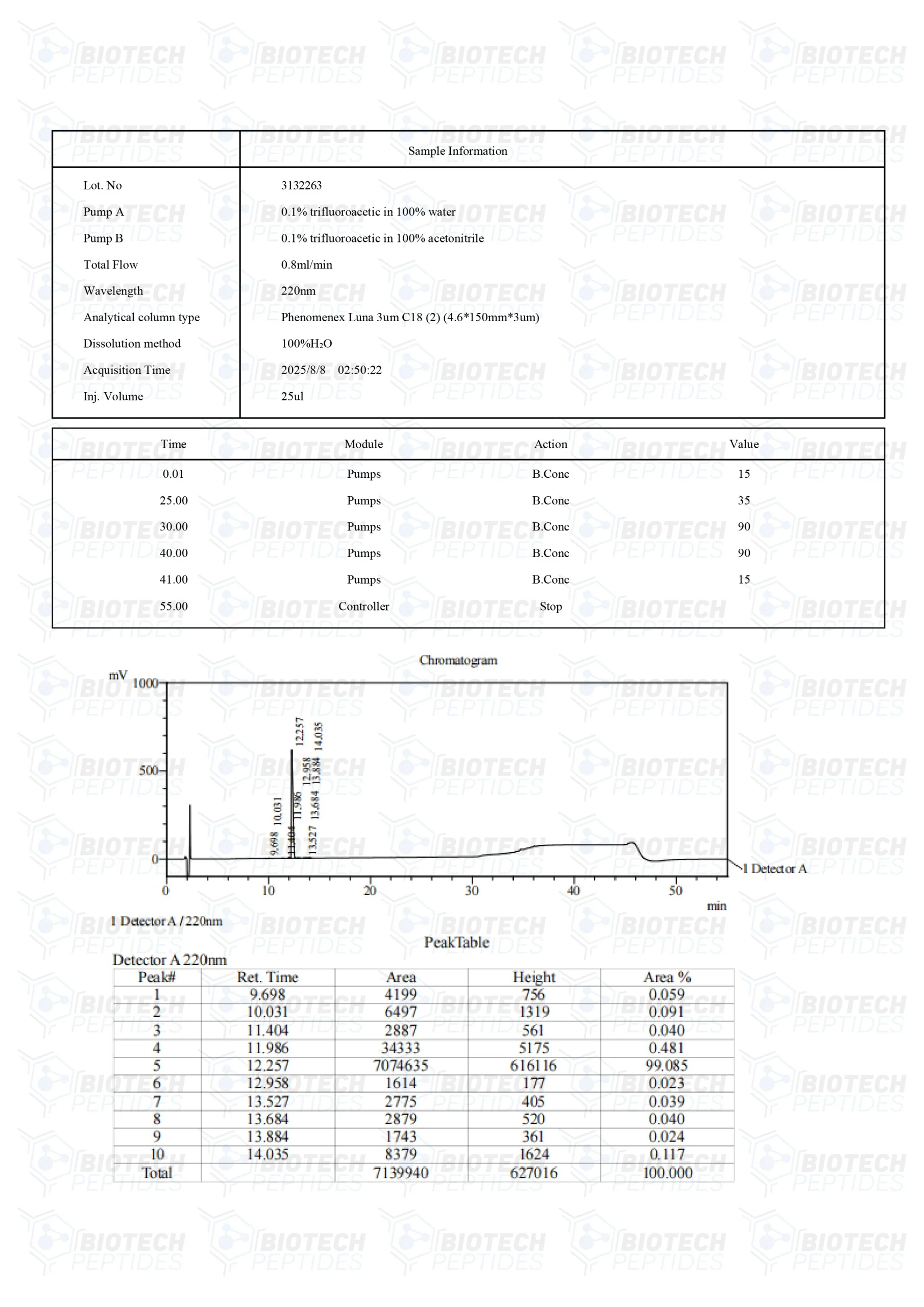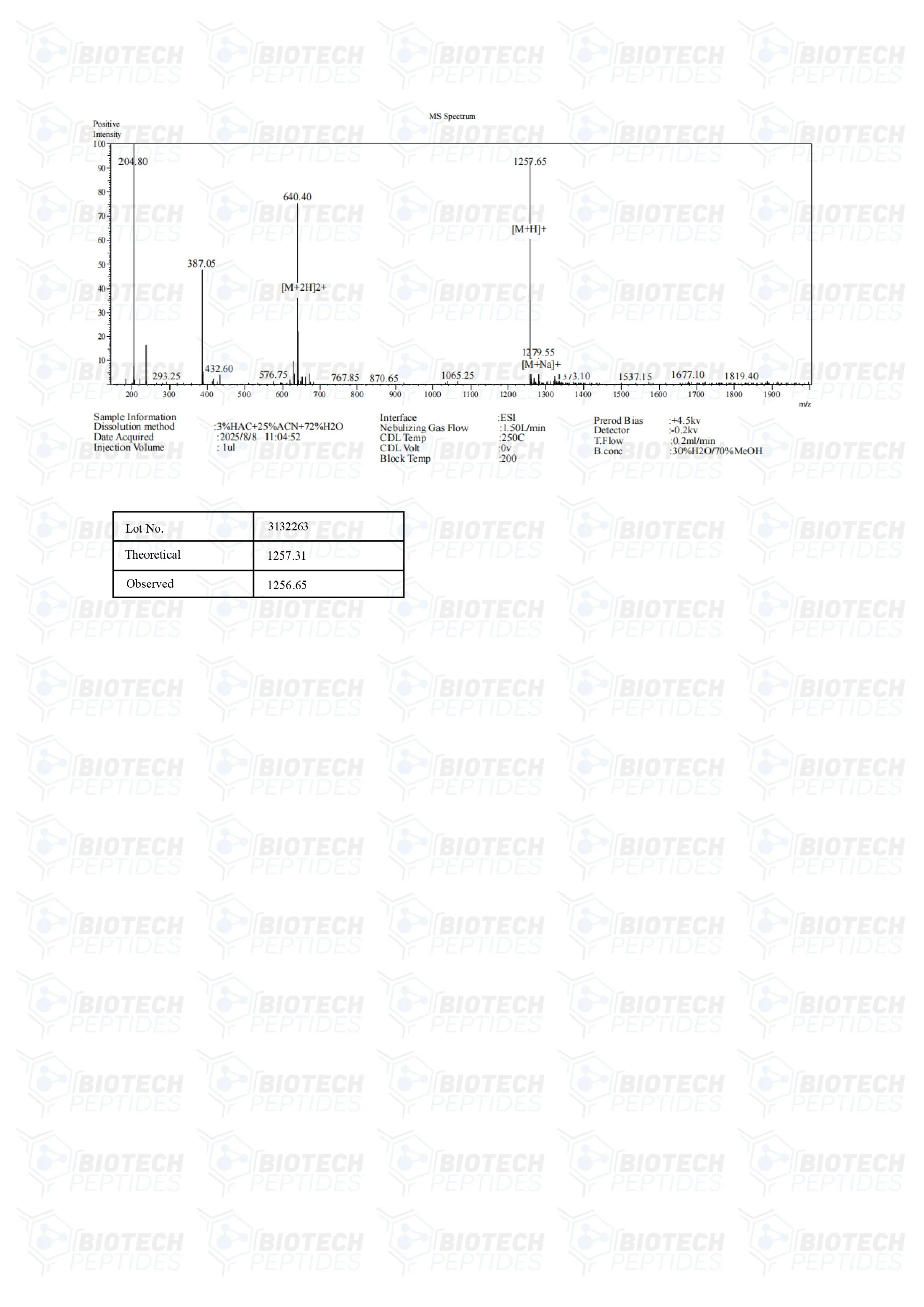 This product is strictly for research/laboratory use only. Human or animal use and/or consumption is strictly prohibited by law. Only qualified and licensed professionals should handle these products. Any information found on Biotech Peptides is strictly for educational purposes only. Refer to our terms and conditions for more details.