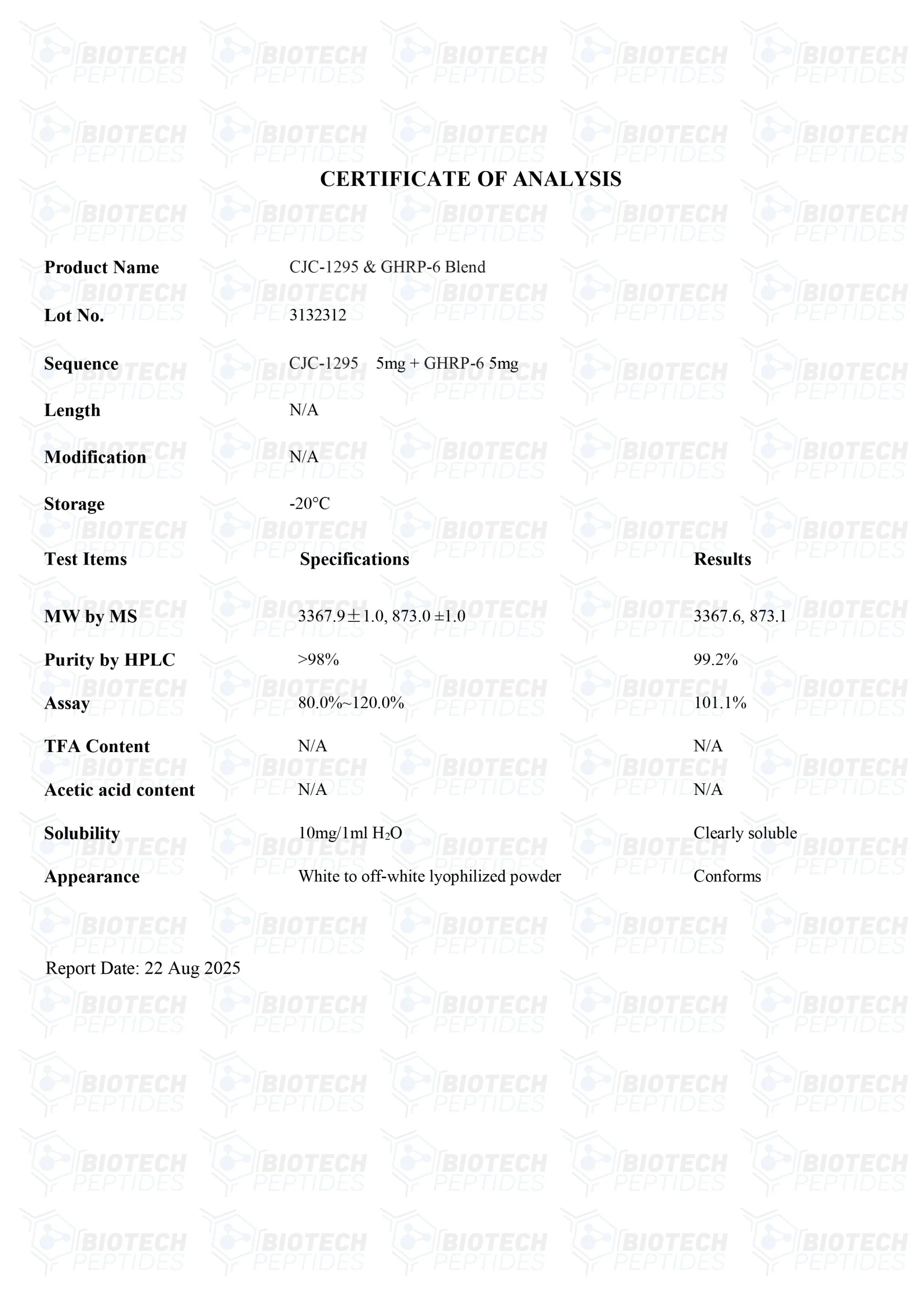 This product is strictly for research/laboratory use only. Human or animal use and/or consumption is strictly prohibited by law. Only qualified and licensed professionals should handle these products. Any information found on Biotech Peptides is strictly for educational purposes only. Refer to our terms and conditions for more details.