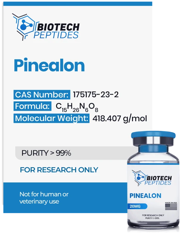Pinealon (also referred to as EDR) is a short peptide comprising only three amino acids (Glu-Asp-Arg). Additionally, it is classified as one of Khavinson’s peptides. EDR is generally extracted from a crude polypeptide extract called Cortexin. Pinealon is considered to be a peptide bioregulator, and it appears to interact directly with DNA. It may contribute to the alteration of gene expression levels. It may potentially exhibit behavior modification and may protect various cell types, including neurons, against hypoxia. Pinealon has been studied for its potential to impact the pineal gland to address issues with metabolism, circadian rhythm disorders, and certain cognitive functions.