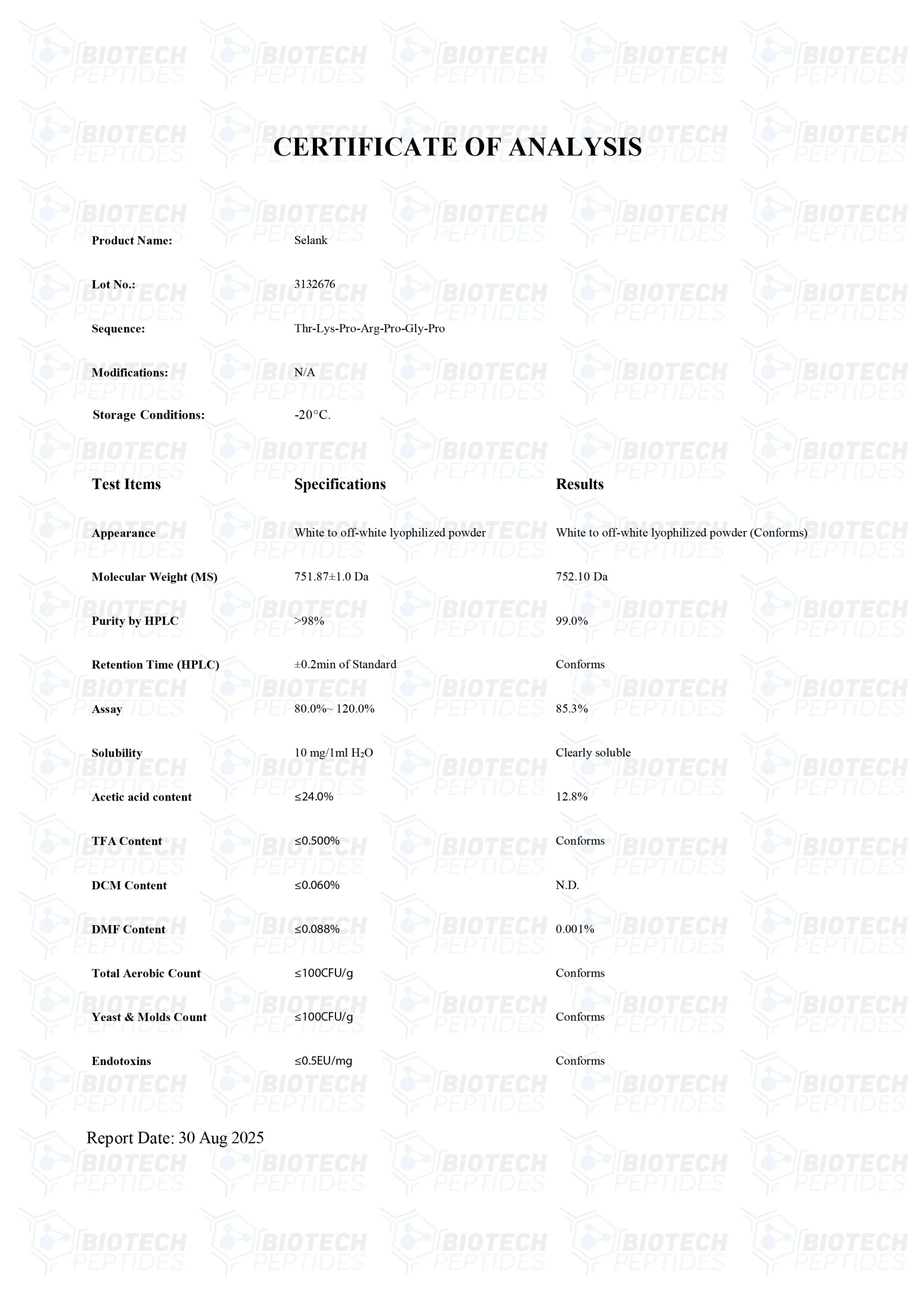 This product is strictly for research/laboratory use only. Human or animal use and/or consumption is strictly prohibited by law. Only qualified and licensed professionals should handle these products. Any information found on Biotech Peptides is strictly for educational purposes only. Refer to our terms and conditions for more details.